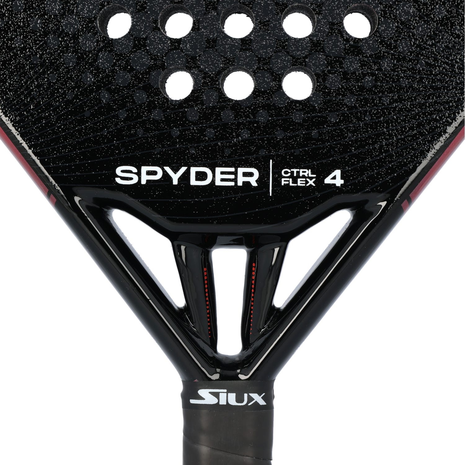Siux Spyder 4 Control Flex – Control with class, available at the Vibora padel shop For players who want to be the boss on the court – without drama, but with precision. ________________________________________ Description The Siux Spyder 4 Control Flex is the padel racket for players who want to dominate with surgical precision and maximum comfort. With its round shape and low balance, this racket is a master of control – ideal for backcourt play and fast-paced play at the net. Not brute force, but strategic finesse. And yes, it also looks sleek. Where other rackets outdo themselves, the Spyder 4 Control Flex lets its game do the talking: quiet, stable, and mercilessly precise.