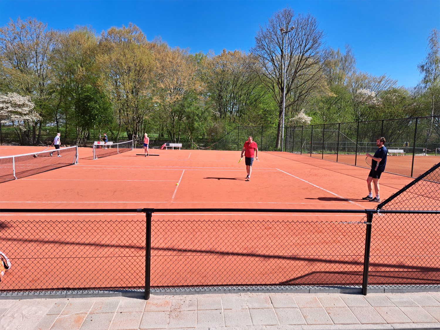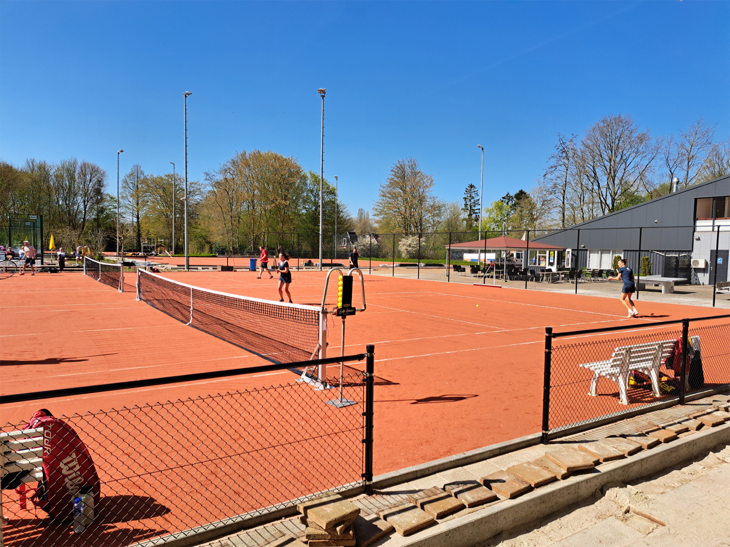 Desondanks is er met man en macht gewerkt om de banen perfect speelklaar te krijgen. Dankzij onze onmisbare vrijwilligers lagen twee gravelbanen én twee splinternieuwe smashcourts er fantastisch bij. Helaas moest er alsnog één wedstrijd binnen gespeeld worden – niet vanwege regen, maar gewoon omdat we inmiddels zo veel teams hebben dat de banen bijna net zo populair zijn als het terras in de zon.