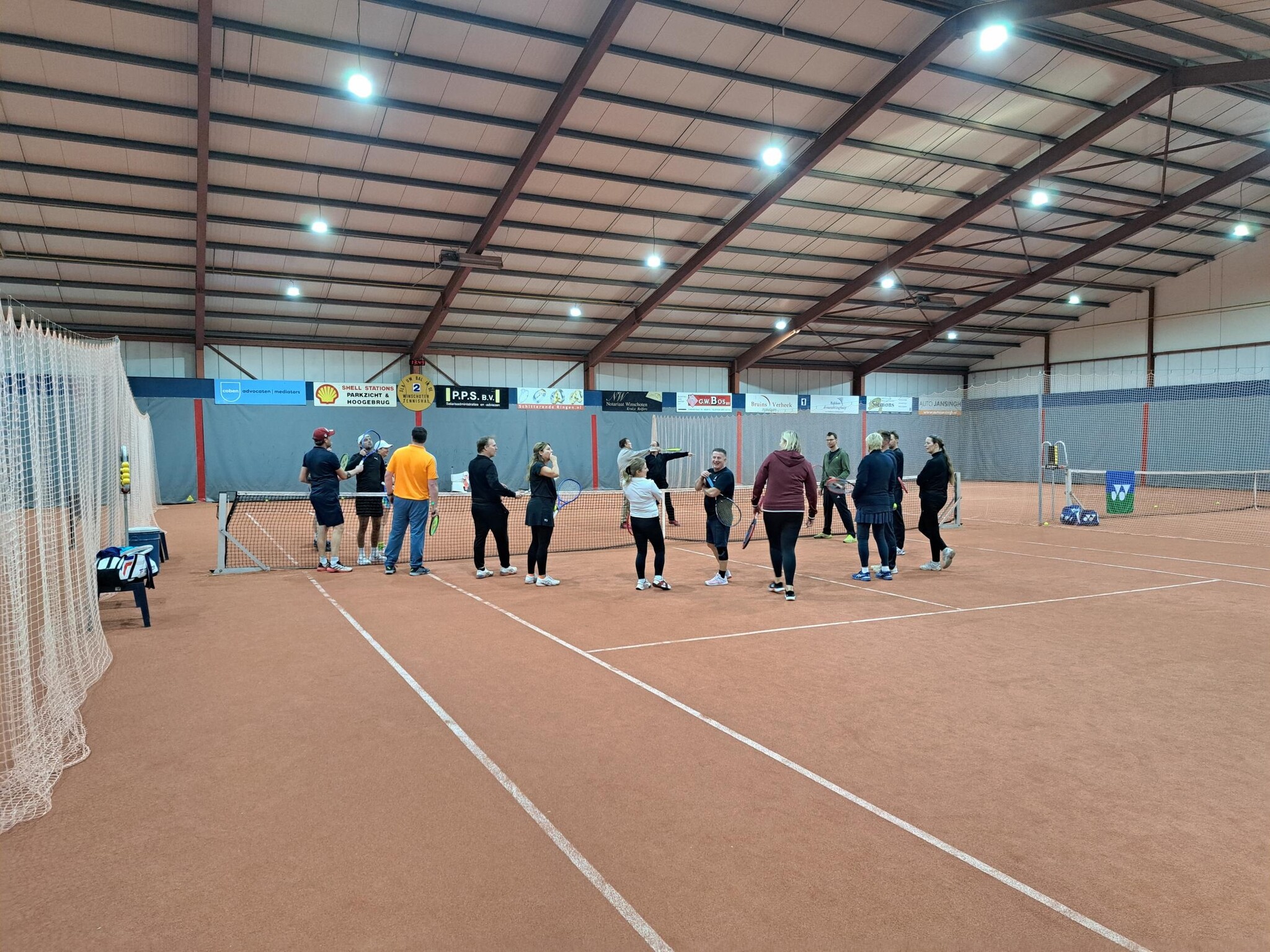 ’s Middags was de opkomst voor de senioren eveneens indrukwekkend. Veel spelers van omliggende verenigingen wisten de weg naar de tennishal te vinden — een prachtig teken van verbinding binnen de regionale tennisgemeenschap. De trainers zetten een afwisselend programma neer waarin techniek, precisie en spelplezier centraal stonden.